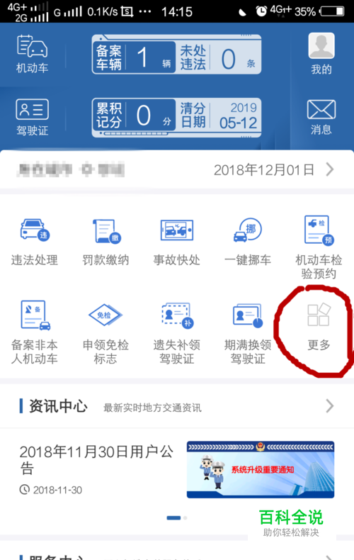 首先,我们点击手机上的交管12123软件,点击打开,然后选择业务中的更多。