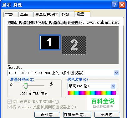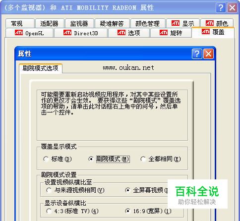 第二步:更新电脑显卡驱动(最好为可用的最新版本),然后进行设置。 一、桌面右键属性——“设置”选项卡,设置如下图 二、桌面右键属性——设置——高级——覆盖——剧院模式选项:分别为:剧院模式、全屏幕视频、16:9(宽屏),如下图 三、桌面右键属性——设置——高级——显示,查看“监视器”和“面板”的分辨率,一般说来1024*768是可以正常显示影片的。 四、桌面右键属性——设置——点击“识别”