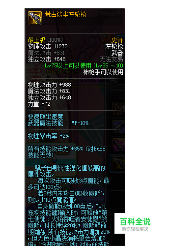 第一选择:荒古遗尘左轮 荒古系列第一选择武器,常驻的技能伤害加成35%,特别适合主要以技能输出为主的漫游职业。