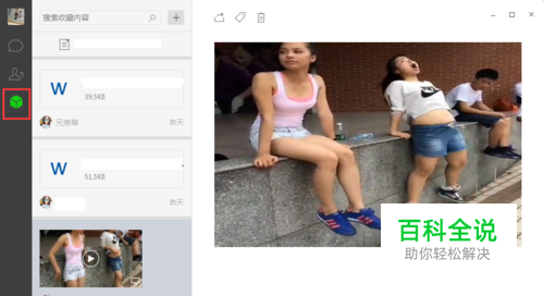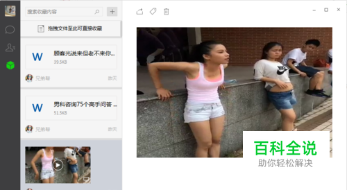 首先把微信添加到[收藏]里面,再登陆电脑版微信,如图所示:点击电脑版微信的[收藏]。并点击[收藏]想要保存导出来的小视频,打开它,并完整播放完。