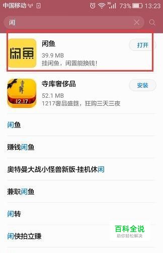 在手机应用市场搜索”闲鱼“下载安装