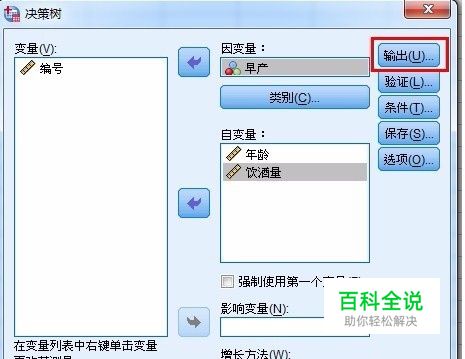 在决策树框中,将你待预测的量放到因变量中,将影响因变量的量放到自变量中,可根据自己的模型在增长方法那里自己选择方法。