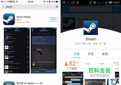 首先前往App Store或者安卓应用市场搜索Steam,并下载安装