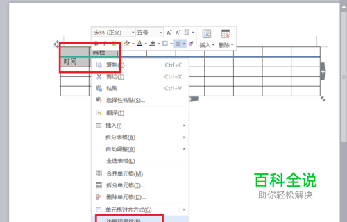 第二步:选择最左上角的表格,然后右击,然后选择边框和底纹。