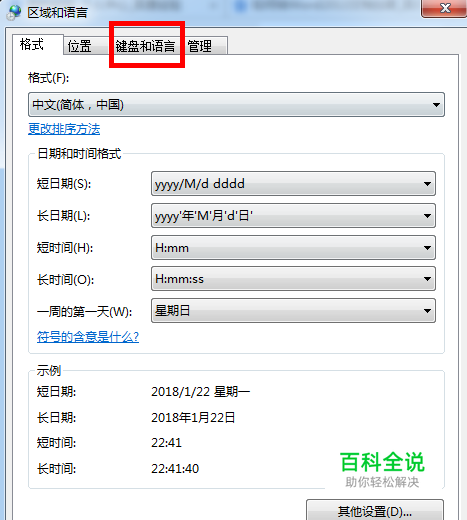 在弹出的“区域和语言”对话框中点击“键盘和语言”,然后点击“更改键盘”。