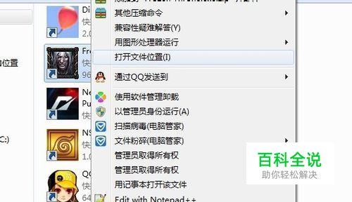 找到魔兽争霸的文件位置。如图,可以右击魔兽争霸游戏图标,在弹出的菜单中选择“打开文件位置”选项。
