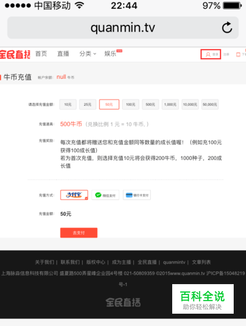 用苹果手机自带浏览器访问全民官方充值网页,然后看图1登录账号,然后选择充值金额,然后选择支付方式(微信、支付宝),然后点支付
