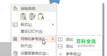 我们在幻灯片空白处右击,在弹出菜单中可以看到参考线命令。