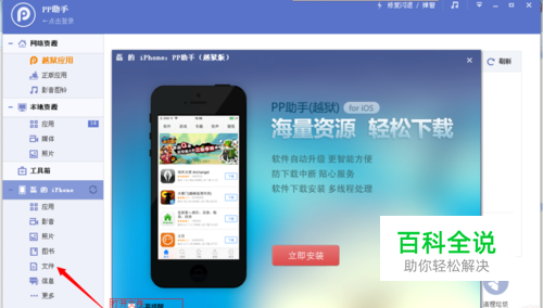 将手机连接在电脑上,打开pp助手,点 文件,选择 系统文件(越狱)。