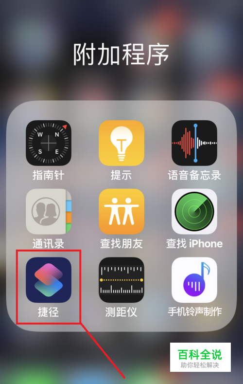 进入“捷径”应用。 点击手机桌面“捷径”图标,进入“捷径”应用。
