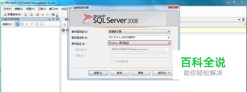 第一步就是打开SqlServer 2008管理工具,打开后如下图,请选择windows身份验证,点击链接