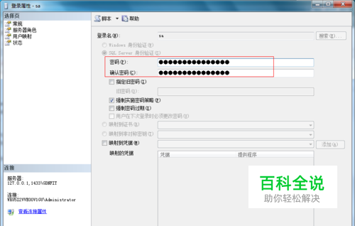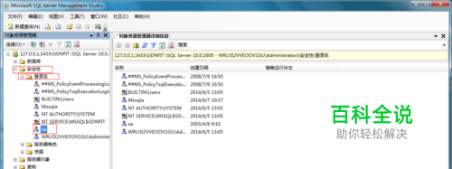 进入的数据库后如下图,按照标记找到sa(安全性/登录名/sa)