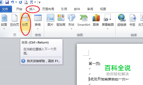 其实分页真的很简单啦! 将光标点到需要重启新页的位置,依次点击菜单选项【插入】-->【分页】,OK! 事实上,也可以通过快捷键【Ctrl+回车】,来完成分页,更加便捷!