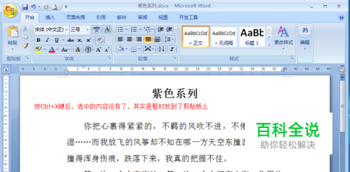 方法一:(2)按Ctrl+X(剪切)组合键或按“开始”菜单里的“剪切”工具