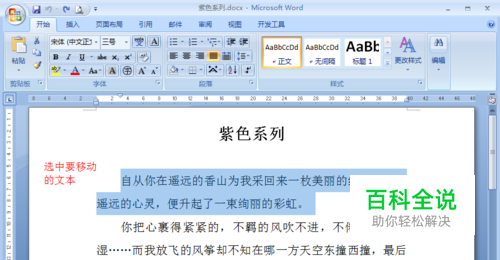 方法二:选中要移动的文本,按下鼠标左键直接拖动选中的文本,到指定位置松开鼠标左键即可