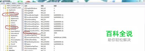 打开注册表编辑器窗口后,依次展开“HEKY_CURRENT_USER\Control Panel\Desktop”,然后在右边键值列表中找到“HungAppTimeOut”项,接着单击鼠标右键选择“删除”,如下图所示: