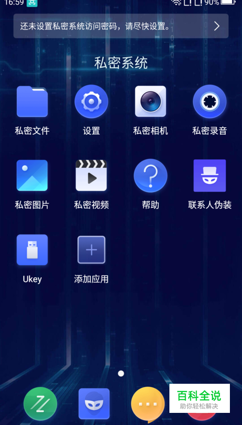 隐私空间的设置可以在主界面找到,设置一下隐私空间的进入方式,可以选择拨号键进入、快捷键进入和安全u盾进入。