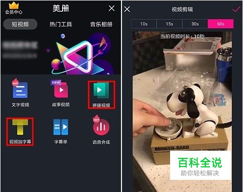 短视频专区的其它功能,可以制作抖音热门的剪辑效果,很多玩抖音想要涨粉的小伙伴很喜欢使用,你也可以将这里的表现形式用到工作中。 比如一边是文字描述,一边是视频的效果,用”字幕单‘功能就能实现,同样导入视频,拖动顶部长条可以剪辑,编辑好点击选取按扭,进入制作页面。