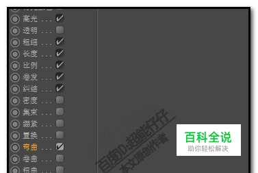 然后,再把“卷发”、“弯曲”、“纠结”都勾选上。 参数按默认的。 然后,我们渲染下,看下效果。