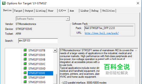 我们重新打开option for target 搜索我们需要的芯片名称 发现已经有了 我们选择好,确认就可以了
