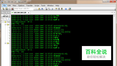 打开软件SecureCRT,ssh到服务器。执行ls -l 命令后如下图: