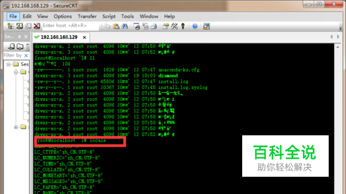上图中乱码,可先通过命令 locale查看服务器的编码格式 。如下图: