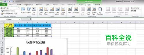 插入图表后,点击选中图表,菜单中就会出现新的菜单项-chart tools,在这个菜单项中可以进行图表的设置。 在我写的另外一个经验中,介绍了如何插入图表以及图表工具chart tools中的design功能应用,可参考下方链接。 这里着重介绍layouts功能。