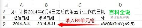 例1:计算2014年8月4日之后的第五个工作的日期是多少?