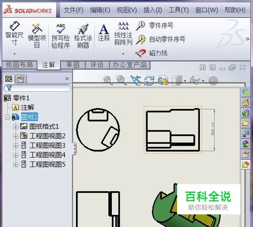 首先,打开solidworks工程图,(这里我已经将工程图你几个投影视图制作好了,这里主要说如何标注形位公差),如图所示