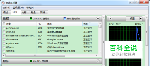 开始---所有程序---附件---系统工具---资源监视器