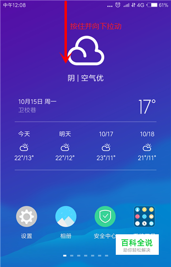小米手机关闭锁屏提示音的方法有两种,第一种就是直接调成静音,在手机桌面上按住顶部下拉打开任务栏。