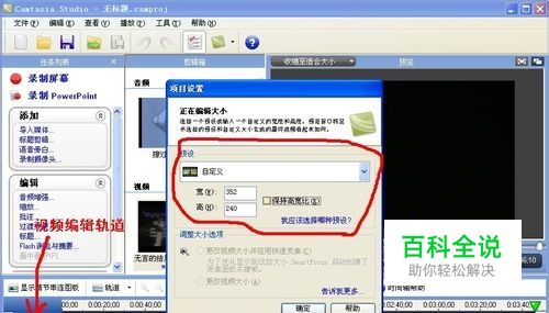 接着选中剪辑箱里的视频,按下鼠标不放,把视频拖到视频编辑轨道上,当视频完成了轨道上的渲染,会弹出弹出视频的宽高等大小参数设置,大家根据自己的需要选择参数,参数设置完成后,单击“确定”按钮,开始进行视频编辑