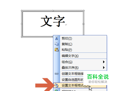 也可以文本框的边线上点击鼠标右键,再点击右键菜单中的【设置文本框格式】,打开文本框格式设置界面。