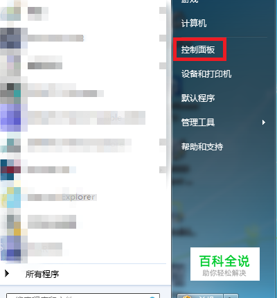 打开电脑,点击电脑左下方的【开始】图标按钮,在上方出现的选项中找到【控制面板】并点击。