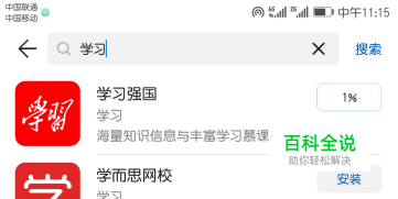 下图第一个软件就是学习强国的标志,点击右侧的【安装】,大小70+M.
