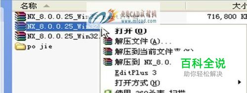 第二步 解压破解文件,解压完成的破解文件如图所示: 有的破解文件可能在一个文件夹里面,比如:NX8.0