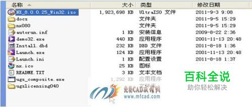 对安装程序包进行解压(此为iso文件,用虚拟光驱打开也行,直接解压也可以) 解压完成的UG8.0安装程序如图所示: