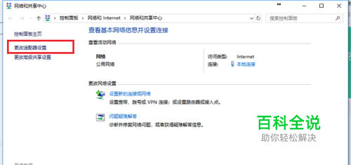 第二步进去网络和共享中心界面之后,点击更改适配器设置,如下图所示: