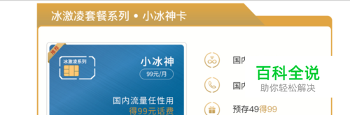 “冰神卡”专属优惠办理政策是什么? 答:冰神卡套餐包括“预存版”和“体验版”两个版本,预存版在手网厅销售,体验版为广告引流销售,区分方法主要看是否具备以下优惠政策(商品页面会写明政策) ① 冰神卡预存版,用户预存送话费: (1)大冰神卡预存99元,得199元话费:用户预存话费99元,赠送100元话费; (2)小冰神卡预存49元,得99元话费:用户预存话费49元,赠送50元话费。 ② 冰神卡体验版,首月免费体验,首次充值送话费: (1)用户激活首月,大冰神卡用户可免费体验5GB国内流量+300分钟国内语音,小冰神卡用户可免费体验3GB国内流量+100分钟国内语音。超出后,流量及语音均按使用量计费,国内语音大冰神卡0.15元/分钟,小冰神卡0.1元/分钟。国内流量均按0.27元/MB收费,累计至10元,按照10元100MB计费,101MB起继续按照0.27元/MB计费,累计至15元时不再收费,直至1GB,以后依次类推。 (2)大冰神卡首充99元,得199元话费:用户首次充值话费99元,赠送100元话费; (3)小冰神卡首充49元,得99元话费:用户首次充值话费49元,赠送50元话费