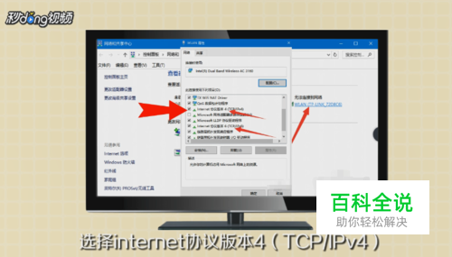 打开WLAN界面,点击“属性”选择“Internet协议版本4(TCP/IPv4)”。
