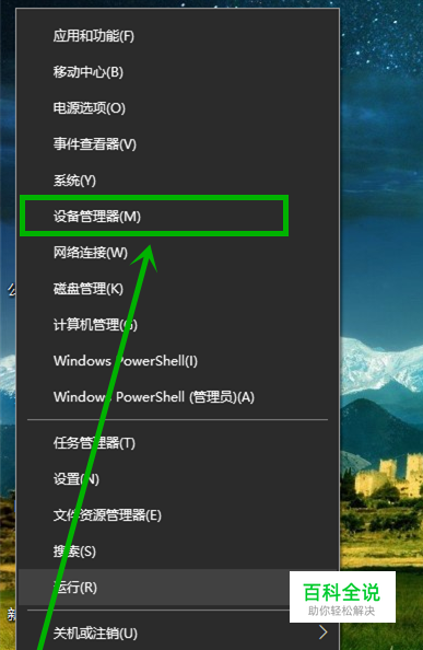 右键开始徽标,在弹出菜单选择【设备管理器】选项