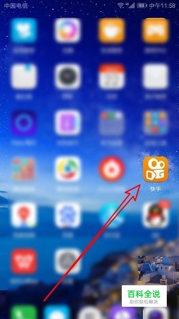 在手机上左右的滑动屏幕,找到安装好的快手的图标。