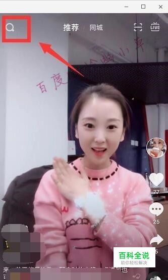 打开抖音,选择图中所示“放大镜”。