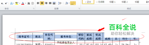 首先,打开word文档,选中表格标题栏。