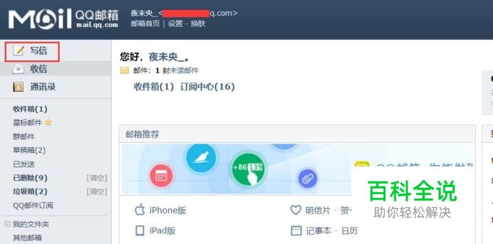 打开QQ邮箱页面,登录账号,点首页左上角的“写信”。