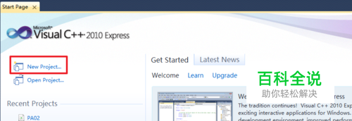 刚开始打开2010的时候是一个 start page页面。根据页面的 New Project. . .提示选项新建一个项目。