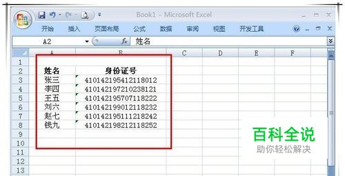 首先,我们打开存有身份证信息的excel文件,这里表数据主要有两个字段:姓名和身份证号。