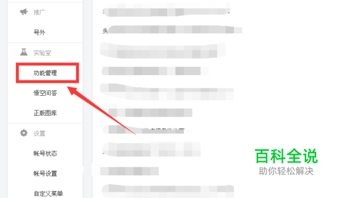 然后我们找到如下图所示的,功能管理这个选项,如果你的帐号有违规可能无法使用这个功能