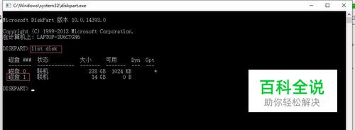 (此时可以再输入list disk,回车,能看到这台电脑的所有磁盘大致情况,u盘一般是磁盘1)
