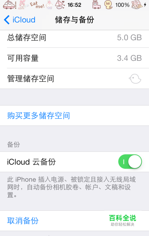 并从“设置”中进入“iCloud”,开启“iCloud云备份”,等待数据备份上iCloud云端